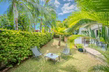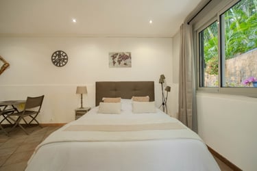 Climatisé, le studio Pitaya offre un jardinet privatif et une terrasse pour des moments de détente. Il dispose d’une kitchenette équipée (cafetière Dolce Gusto, bouilloire, micro-ondes/four, réfrigérateur), d’un lit 160 cm avec matelas à mémoire de forme, d’une salle d’eau avec double vasque et toilettes séparées. Un téléviseur écran plat, une penderie et un coffre-fort complètent ce cocon idéal pour un séjour en toute sérénité.